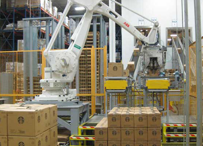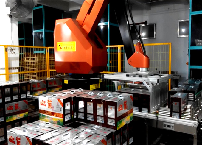 智能箱碼垛系統(tǒng)是將裝入紙箱的物料或者是經(jīng)過包裝和未經(jīng)包裝的規(guī)則物品,按一定排列碼放在托盤(木質(zhì))上,進(jìn)行自動堆碼,可堆碼多層,然后推出,便于繼續(xù)進(jìn)行下一步包裝或者叉車運(yùn)至倉庫儲存。碼垛機(jī)實現(xiàn)智能化操作管理,可大大地減少勞動人員和降低勞動強(qiáng)度。