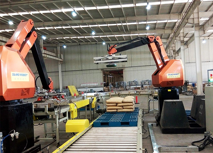 全自動(dòng)包裝碼垛設(shè)備廣泛用于石化、食品、醫(yī)藥、飼料、糧食、有色礦物和建材等行業(yè)中的粉狀、粒狀物料、規(guī)則有一定體積物品的自動(dòng)包裝和自動(dòng)碼垛。