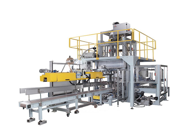 賽摩智能針對化工、糧食、農(nóng)化、食品等行業(yè)的大袋子粉末物料包裝而設(shè)計的新型包裝機機組,該機組具有自動稱量、自動上袋、自動填充、自動送包、自動封口等功能??膳c后道碼垛機器人等設(shè)備實現(xiàn)聯(lián)動,實現(xiàn)大規(guī)格包裝、碼垛無人化作業(yè)。