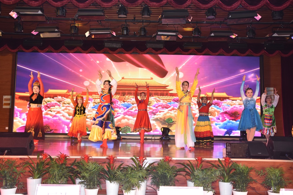 五十六個(gè)民族五十六枝花,五十六個(gè)兄弟姐妹是一家,五十六種語言匯成一句話—《愛我中華》。