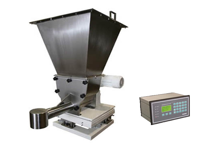 當(dāng)料斗中測量的重量達(dá)到料斗低料位(重新加料)時(shí),控制器將給料系統(tǒng)按容積給料進(jìn)行控制,然后將電動(dòng)閘門打開,給料斗快速重新裝料,到達(dá)料斗高料位,關(guān)閉電動(dòng)閘門,失重控制器重新動(dòng)作。
