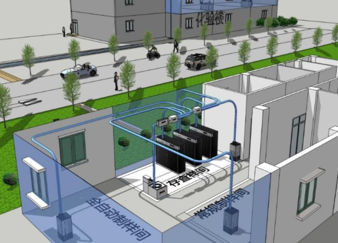 煤樣瓶通過(guò)積碩的氣動(dòng)管道傳輸,分別送入化驗(yàn)室和智能存樣柜
