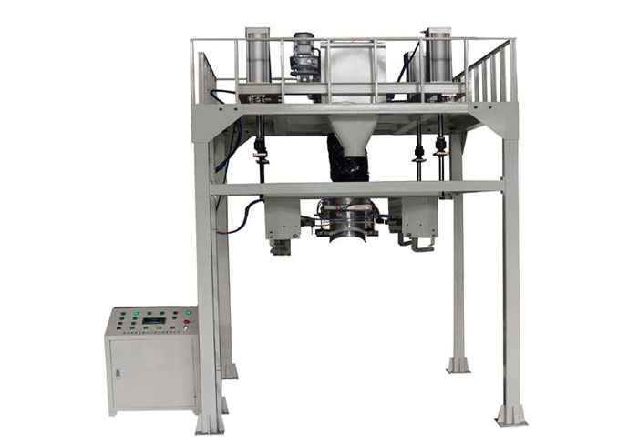 大袋包裝機(jī)是一種用于大包裝袋和集裝袋包裝的專用設(shè)備,人工將空袋套在下料口,包裝機(jī)可將稱重后的定量物料投入料袋中,或?qū)⑽锪现苯油度氪袑?shí)現(xiàn)邊稱重邊投料。
