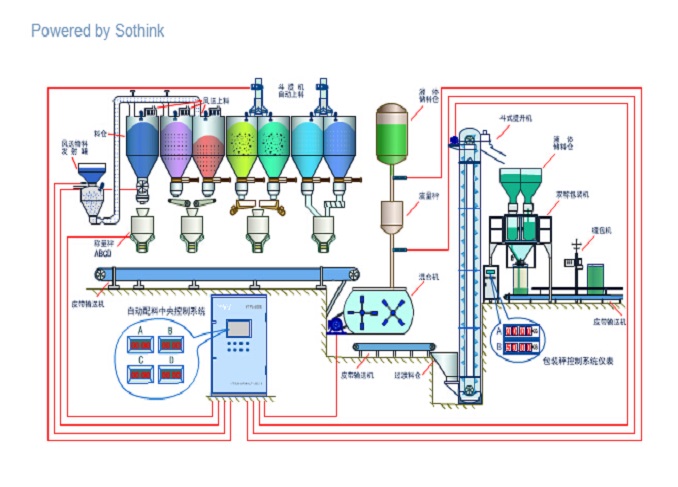 1、多物料:該系統(tǒng)按照規(guī)定的重量配比,自動完成2-10種物料的配料;