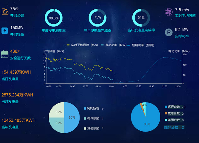 風(fēng)電中心運(yùn)營管控平臺以“真實(shí)、及時(shí)、準(zhǔn)確、全面”為基本原則,融合區(qū)域數(shù)據(jù)中臺、技術(shù)中臺、業(yè)務(wù)中臺技術(shù),集智慧生產(chǎn)管理、運(yùn)維、經(jīng)營分析應(yīng)用于一體,動(dòng)態(tài)展現(xiàn)區(qū)域安全生產(chǎn)等各項(xiàng)管理工作,實(shí)現(xiàn)各專業(yè)、各系統(tǒng)之間的協(xié)同管控、風(fēng)險(xiǎn)預(yù)判與智能決策,有效提高區(qū)域生產(chǎn)經(jīng)營管理水平、盈利能力和決策執(zhí)行效率。